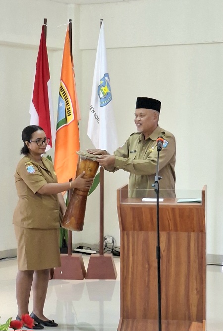Bimtek tersebut dibuka secara resmi oleh Wakil Bupati Kabupaten Sorong, H.Ahmad Sutedjo,S.Pd.,di Aimas Hotel,Senin(1/12/2025) yang ditandai dengan pembubuhan tifa sebagai simbol komitmen pemerintah dalam mendukung peningkatan kapasitas pelaku usaha lokal.