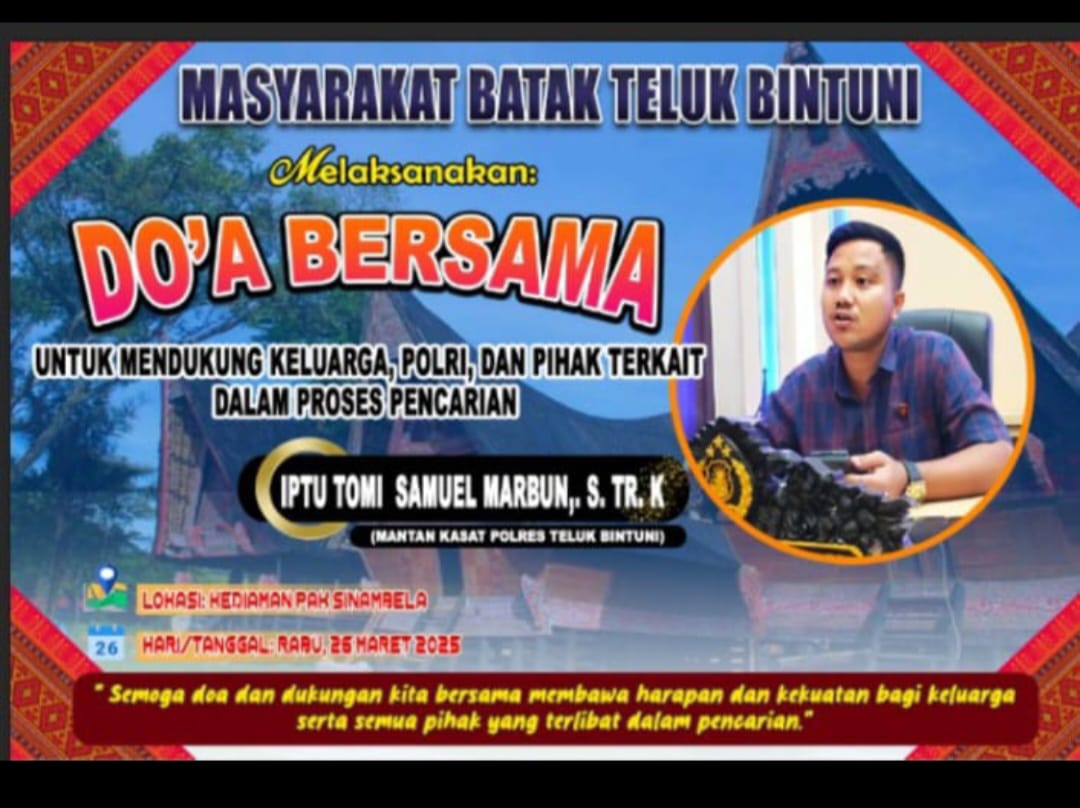 Masyarakat Batak di Teluk Bintuni berkumpul untuk menggelar doa bersama sebagai bentuk dukungan bagi keluarga,Polri,dan pihak yang terlibat dalam pencarian Iptu Tomi Samuel Marbun.